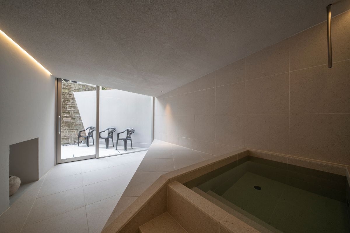 設計デザインは、平野屋サウナを手掛けた伊藤隆一氏。心を内観できるように無駄を排除し、トーンを押さえたシンプルなデザインで依頼しました。あえてBGMなどで音は作り出さず、自然に発生している音に耳を傾け、心を落ち着かせる空間にしたいと考えています。