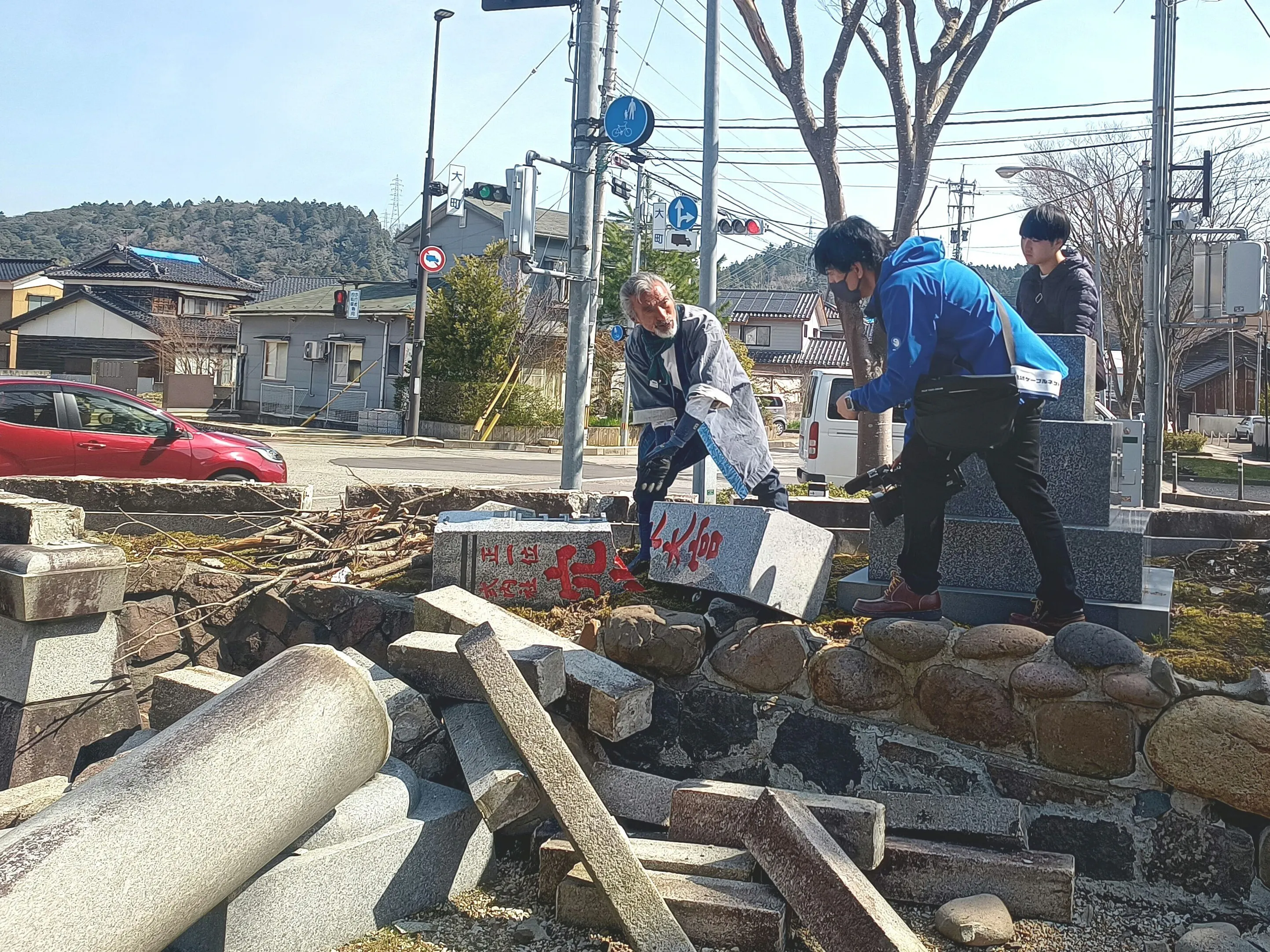 ボランティアの皆さんが穴水大宮を訪れ、まずは被害状況や撤去方法、修繕・保存方法などについてこれからの計画・進め方を話し合い、アドバイスもいただきました。