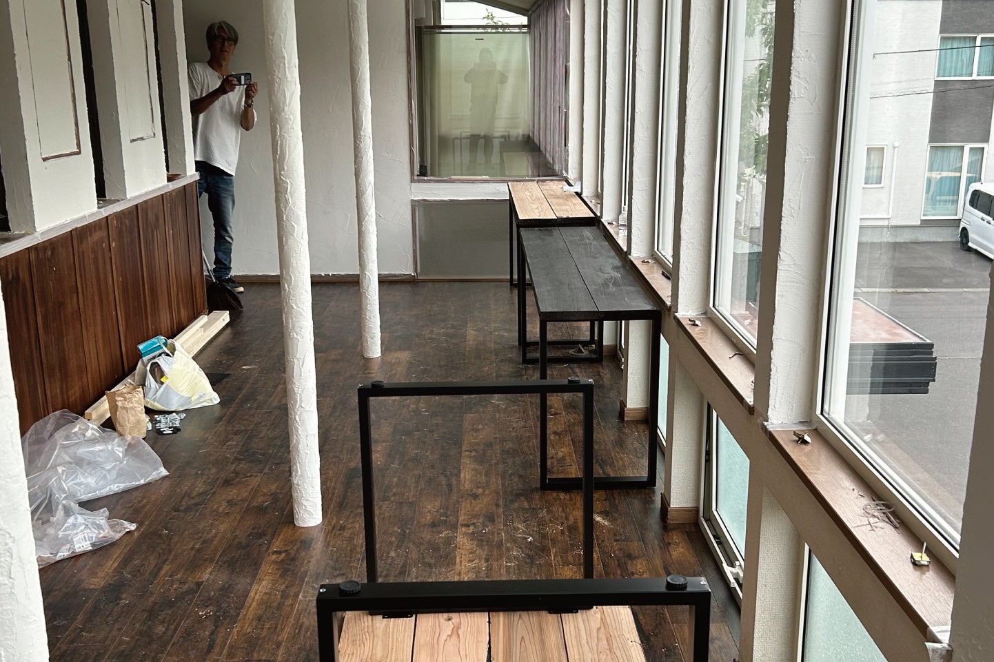 先週からカフェスペースのテーブルをDIYしています。