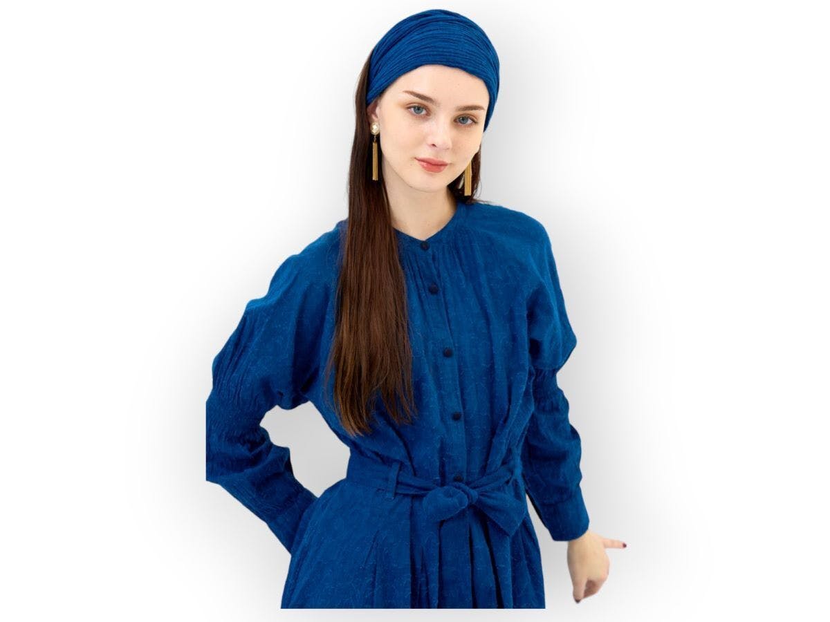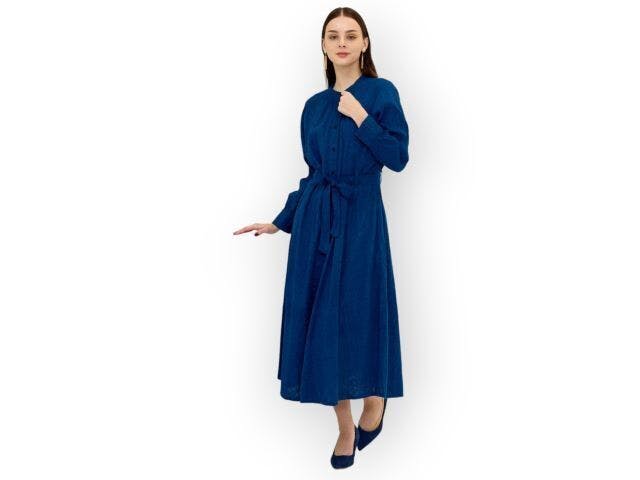鮮やかな藍染の色合いに、女性らしいシャーリング袖が特徴のワンピースです。藍染の風合いを活かした独自の染色技法により、深みのある美しい色合いが実現されています。さらに、シャーリング袖が華やかさをプラスし、女性らしい柔らかな印象を与えます。