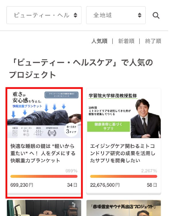 ビューティー・ヘルスケア部門で、人気順で上位に掲載、