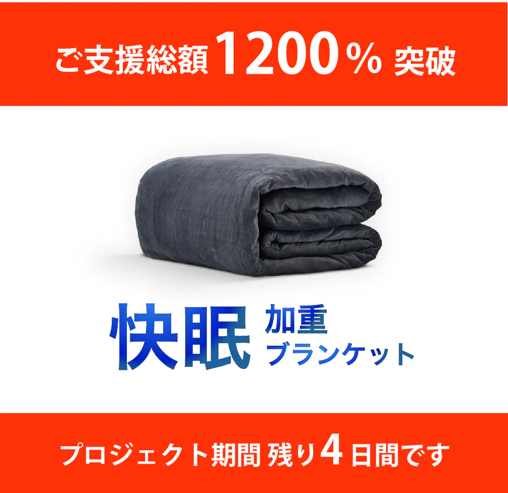 「快眠加重ブランケット」のプロジェクトが残り4日間で終了となります。