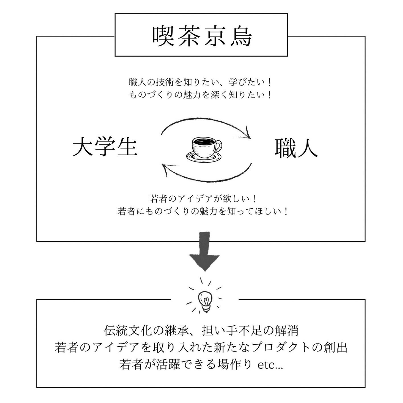 「大学のまち」として多くの若者が暮らしているこの京都市で、ものづくりに携わる多業種・多世代の交流を促進し、次世代にその魅力を伝えていきたいと考えております。