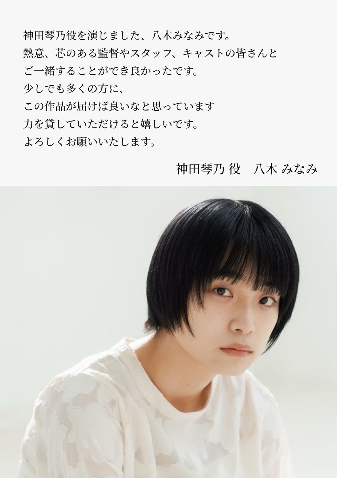 神田琴乃役・八木みなみさんからコメントが届きました!