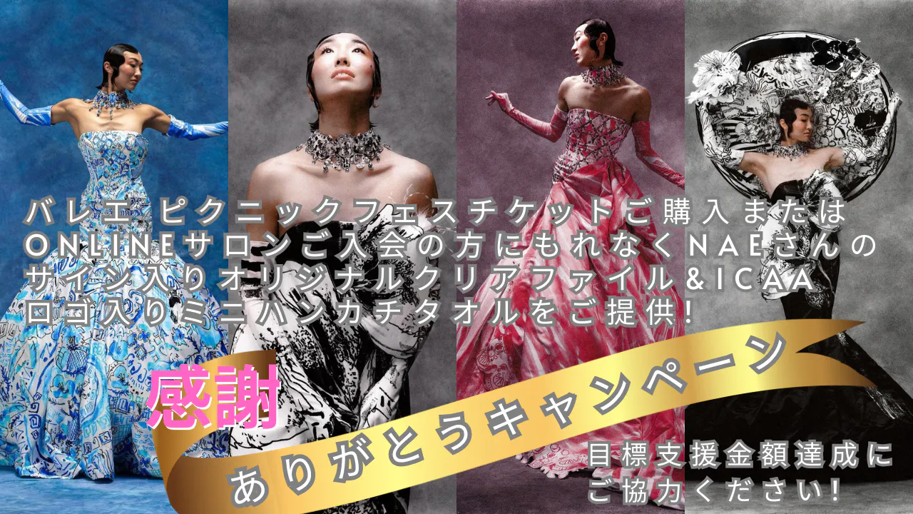 バレエ ピクニックフェスチケットご購入 or ONLINEサロンご入会の方にもれなくNAEさんのサイン入りクリアファイル & ICAAロゴ入りミニハンカチタオルをご提供!