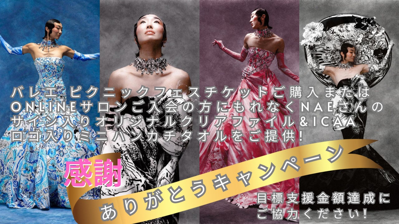バレエ ピクニックフェスチケットご購入 or ONLINEサロンご入会の方にもれなくNAEさんのサイン入りクリアファイル & ICAAロゴ入りミニハンカチタオルをご提供!