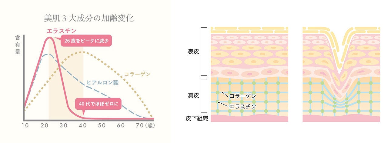 コラーゲンとともにお肌のハリに欠かせないタンパク質「エラスチン」と、