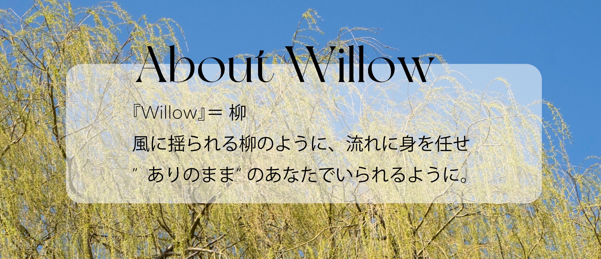 現代の人々は、日々の生活の中で頑張りすぎている人たちが、多いように感じます。そんな人々の肩の力を抜くきっかけを与えられればと思い、Willowを立ち上げました。