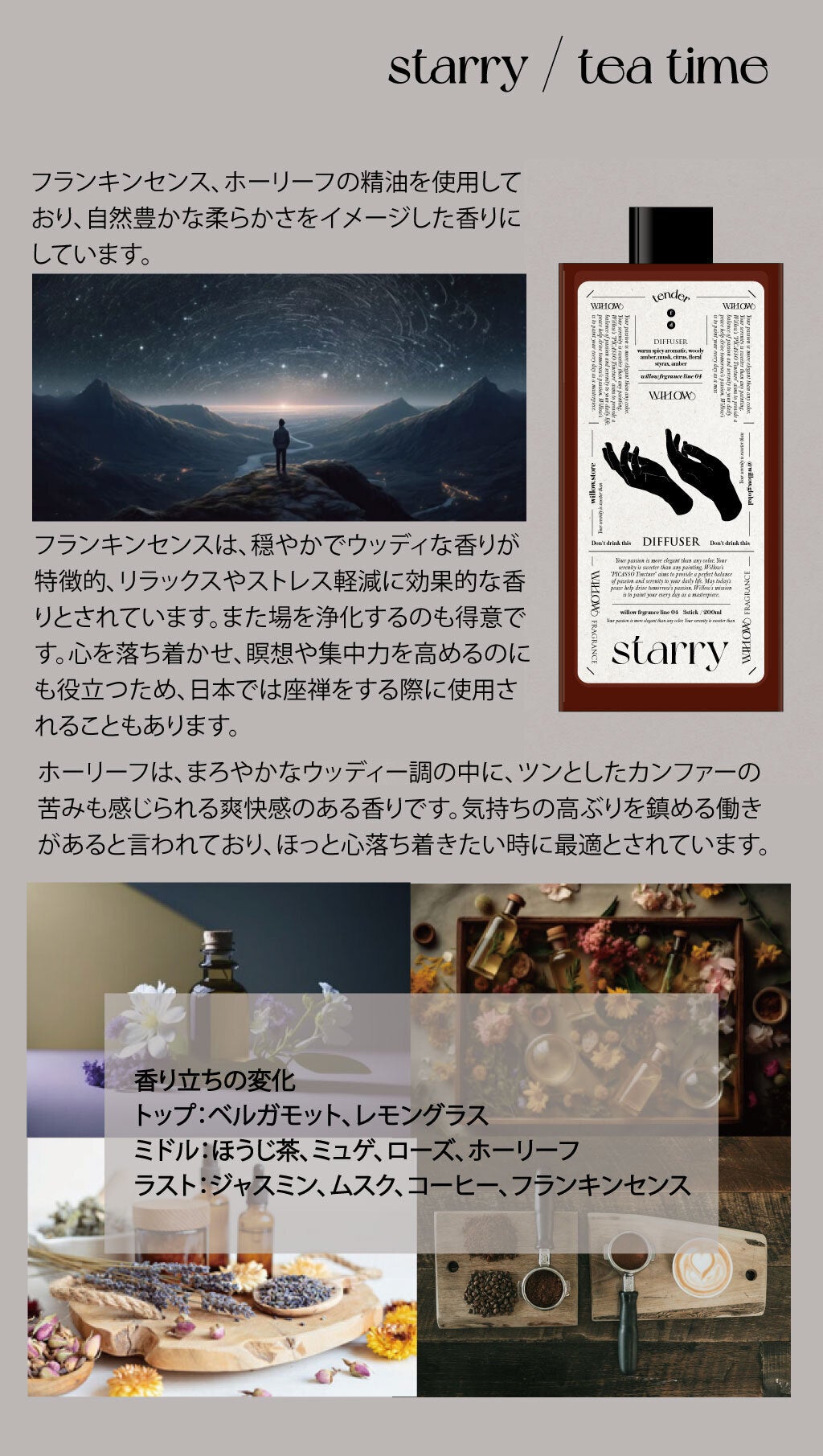 Willowは【tender】【starry】の2種類のディフューザーを発売します。