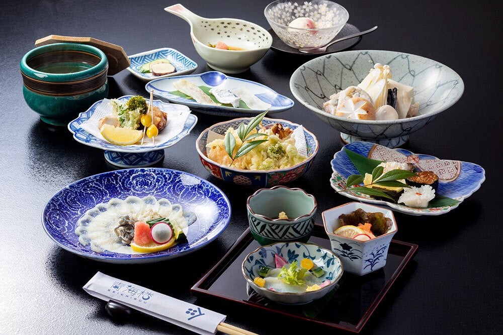 能登ふぐ会席:能登で水揚げされた天然ふぐをてっさ、てっちり、天ぷら、焼き物などをお楽しみいただけます。