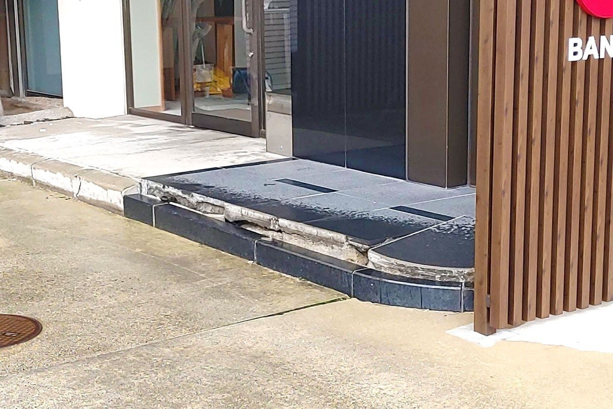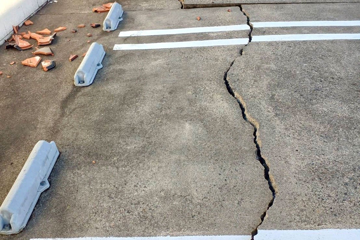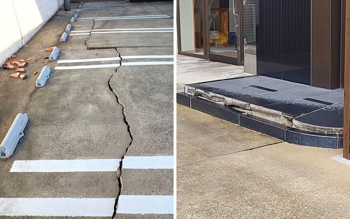 駐車場に大きな亀裂が入り、建物は段差が発生しました。
