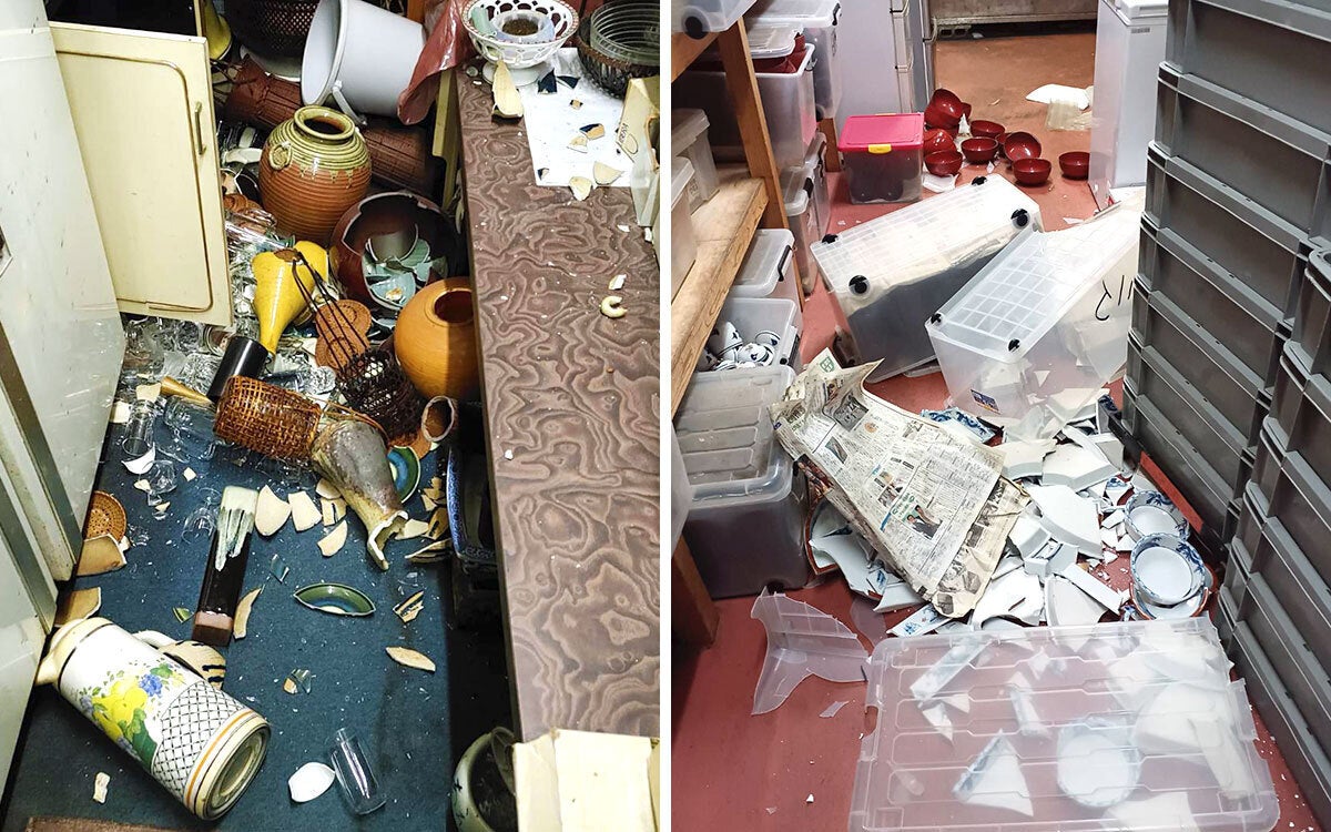 お料理を盛り付ける器、店内を飾る花器も破損しました。