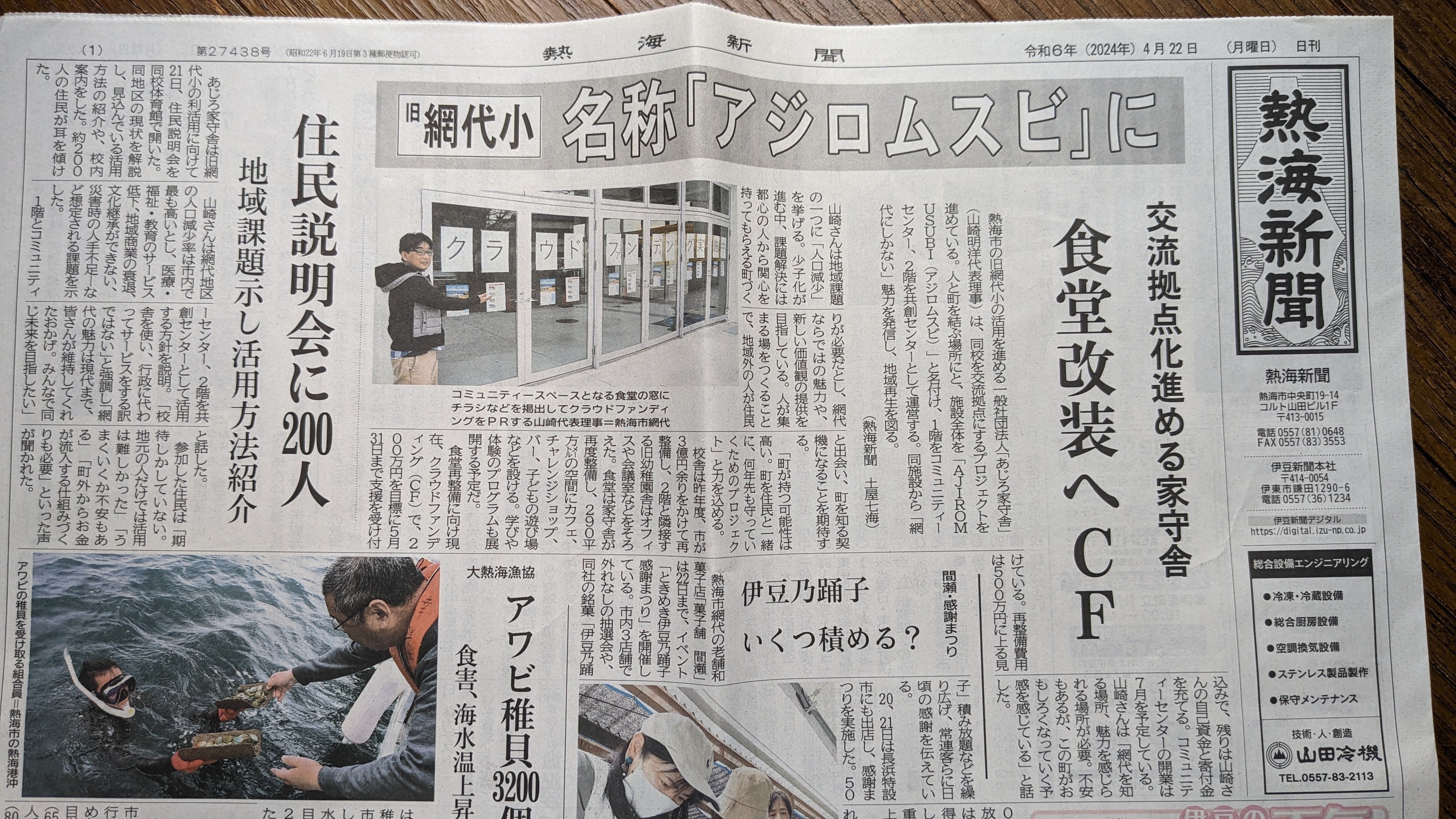 昨日の熱海新聞にてクラウドファンディングと住民説明会のことを掲載いただきました。