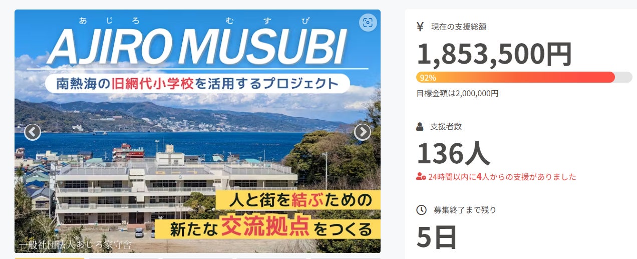 クラウドファンディング残り5日!目標金額まで8%となりました。