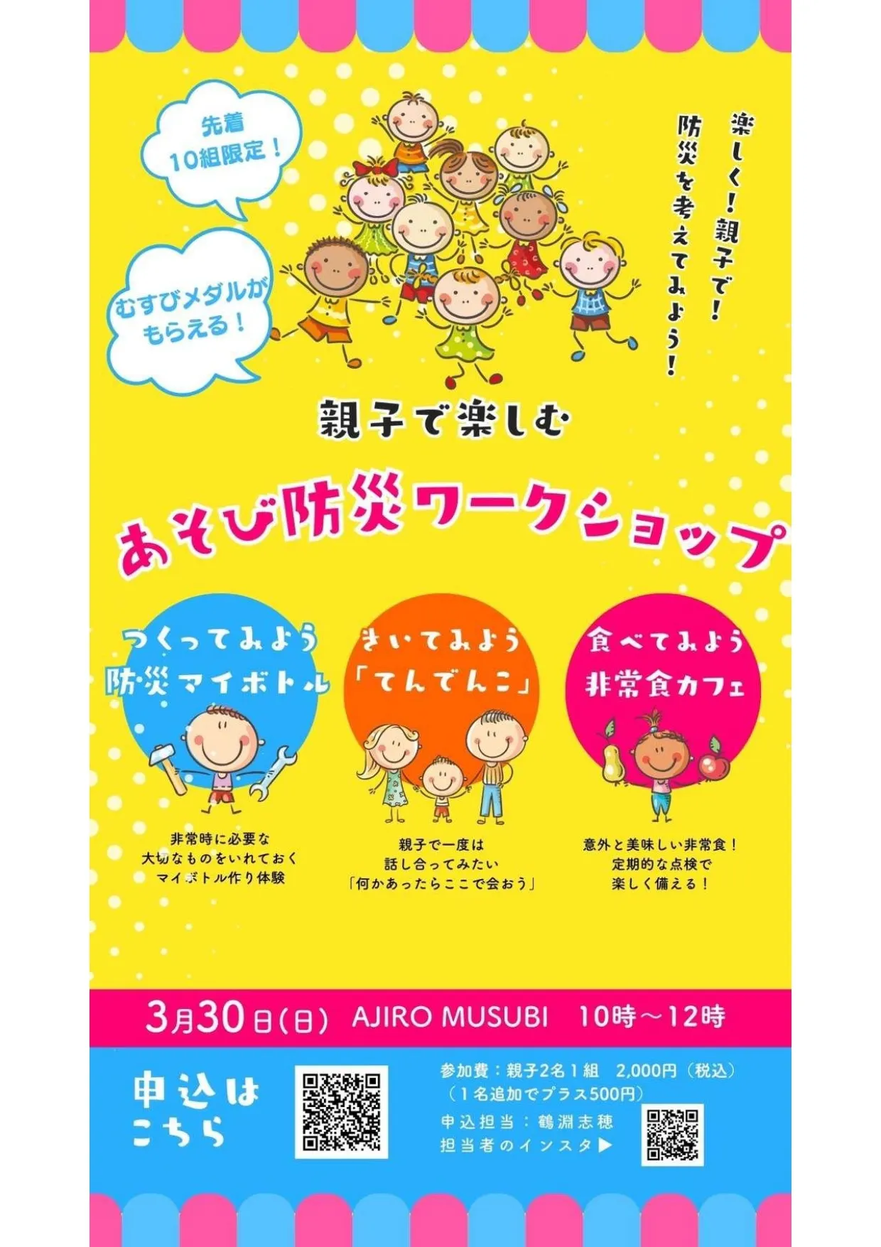 親子で楽しむ 「あそび防災ワークショップ」が開催されます。