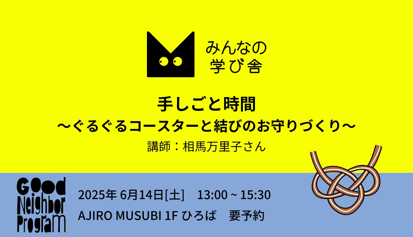 そして、古くから「縁を結ぶ」「魔除け」とされる麻ひもで、願いを込めたあわじ結びのお守りづくり。