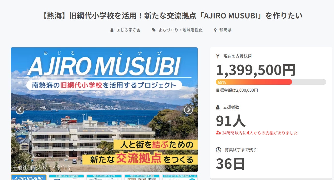 12月7日(土)11:00~AJIRO MUSUBIのカフェが、「むすび食堂」としてリニューアルオープンします!むすび食堂は「地産地食」をテーマに、網代の海で獲れたお魚や伊豆の恵み豊かな野菜を使ったお料理を提供する食堂です。地元の自然と人々の手で育まれた食材を、心を込めて調理し、おいしく楽しい食卓をお届けします。さらに、生ごみを資源として活用するコンポストの取り組みを通じて、地域の食の循環を生み出しています。この食堂は、ただ食べるだけの場所ではなく、地域の食文化を「結ぶ」場です。むすび食堂が目指すのは、地元の方々や訪れる皆さんが、網代や伊豆の魅力を感じ、笑顔と交流が生まれる場所をつくること。食を通じて地域を元気にし、未来へと続く豊かな地域づくりを応援する食堂です。12月より営業時間と定休日が変更となります。営業時間:【現状】9:00~15:00⇒【変更】11:00~17:00※AJIRO MUSUBIの施設は10:00~17:00となります。定休日:【現状】火曜・水曜⇒【変更】火曜・水曜・木曜※11月30日~12月6日リニューアルオープン準備のためカフェは休業となります。AJIRO MUSUBI(旧網代小学校)住所:静岡県熱海市網代195