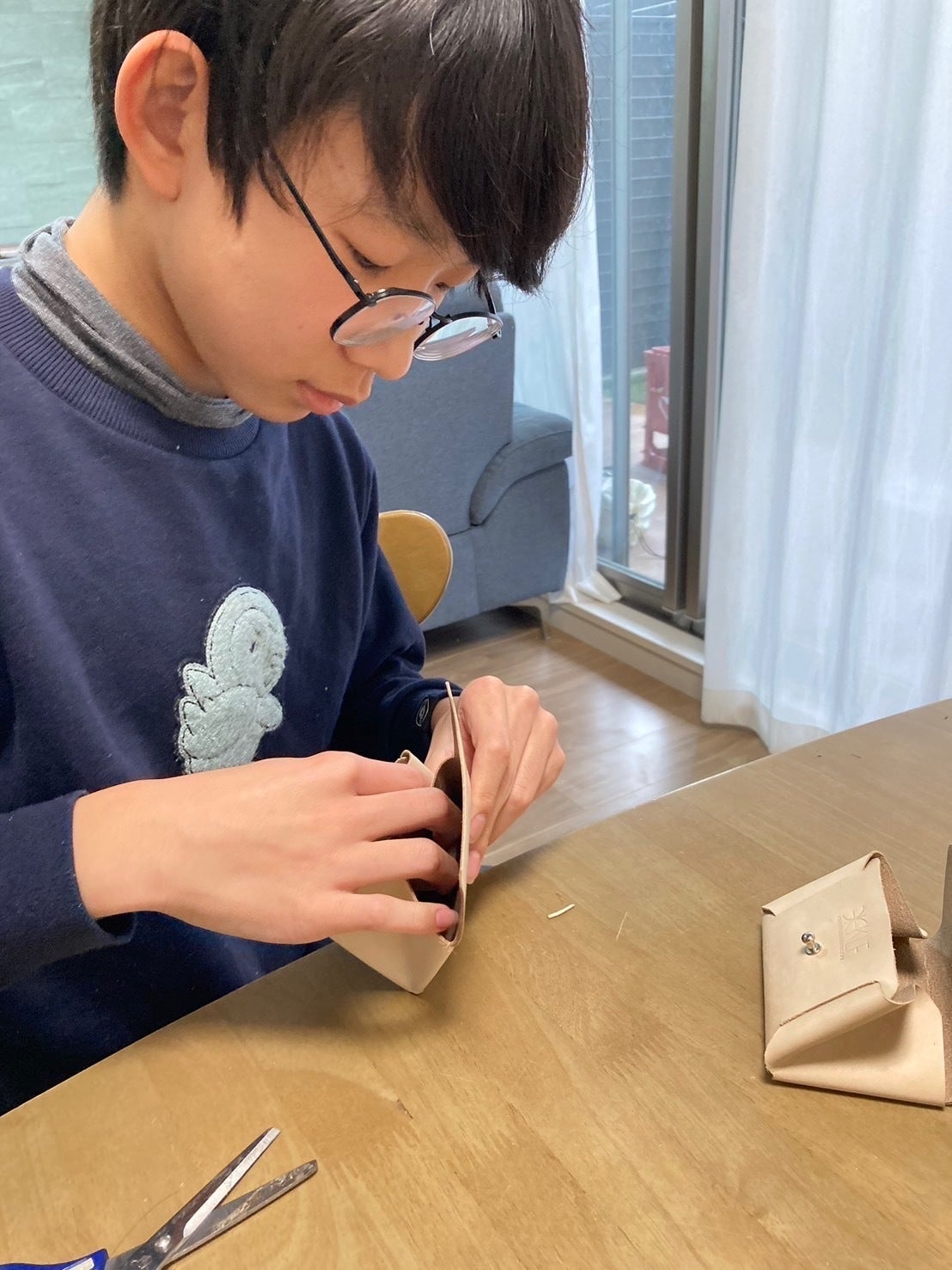 知り合いの方からの依頼でご自宅で親子4人ですがレザークラフト教室を開催しました。その時の年齢に関係無く出来上がった瞬間、皆が輝いていました。現在は知り合いのお子様達に製作を簡素化し誰でも手作り出来るかを手伝ってもらっています。