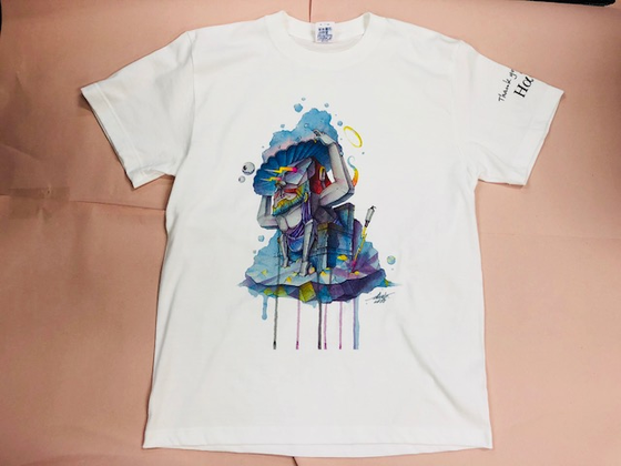 imaone(イマワン)氏(※1)からデザインが上がってきた時点で「Tシャツにしたい」という思いがありました。一方で色が多いので上手くプリントできるか心配もありましたが、ご覧の通りいい感じに仕上がってます!