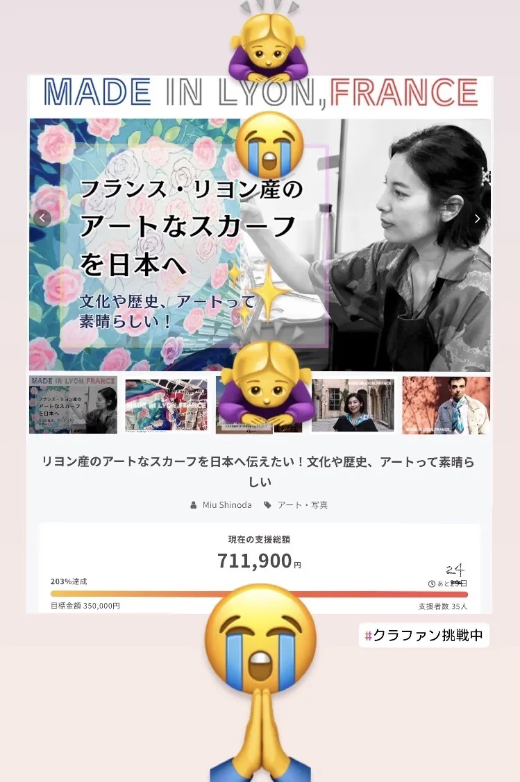日本在住の方だけでなく、フランス国内やヨーロッパ在住の方にも応援頂いており、感謝しきれません。