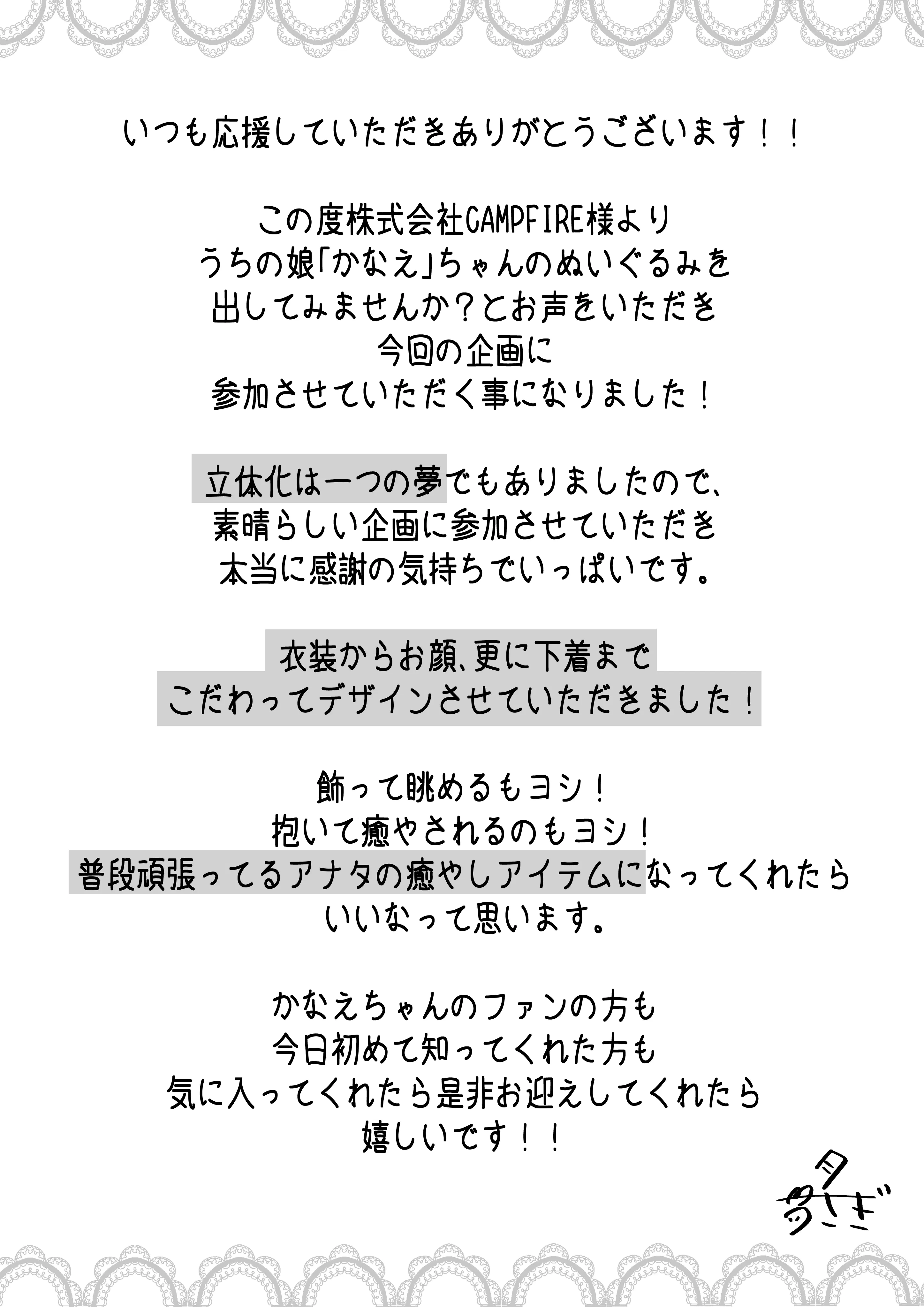 月うさぎの描く「かなえちゃん」が初のぬいぐるみ化に挑戦します!