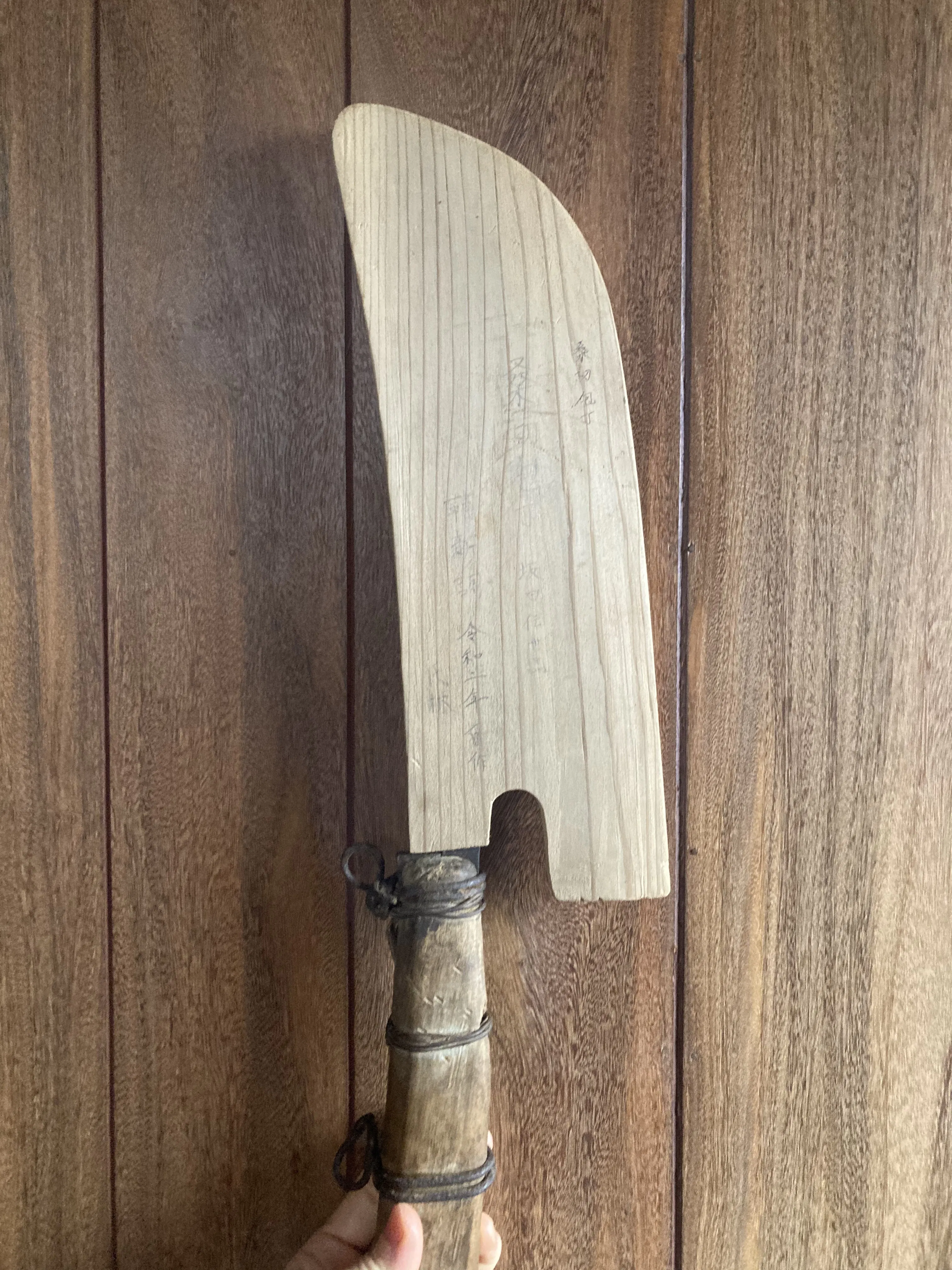 これは幕末の小さい鉈を記念して桜の木で型を取ったものです。