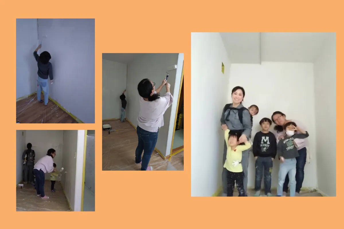 産後のお母さんに休んでいただくためのお部屋のペンキ塗りを手伝ってもらいました。
