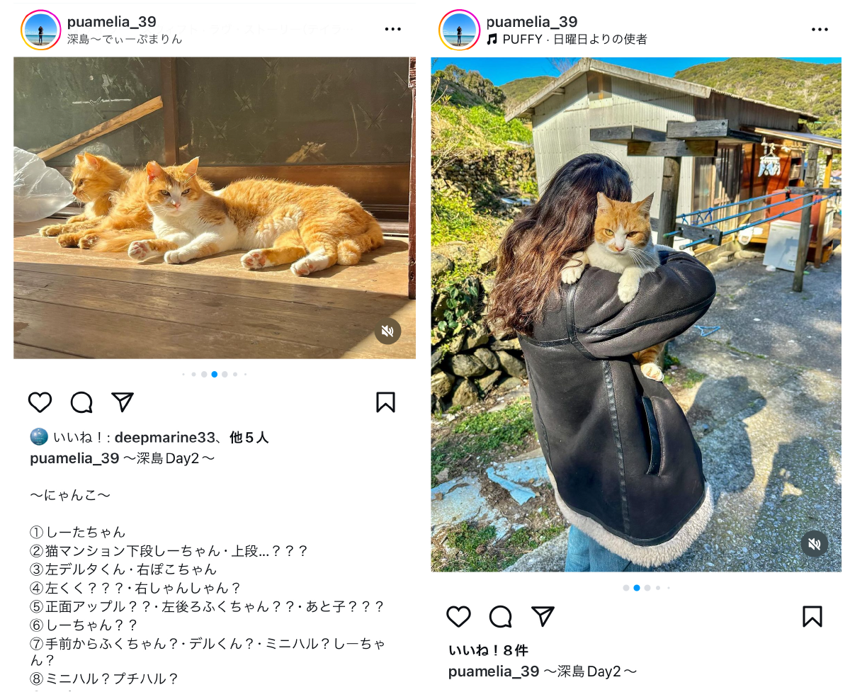 深島に行く前には、この子に会えたら嬉しいなぁと想いを馳せてもらえたら、そして、深島に来た際にはお目当ての子を見つけて触れ合ったり写真を撮ったりしてもらえたら嬉しいです!
