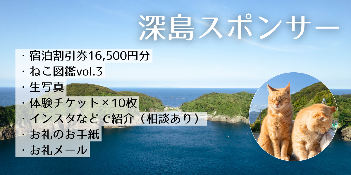 【リターンで体験】ねこ図鑑+深島体験チケット2枚セット(10,000円)