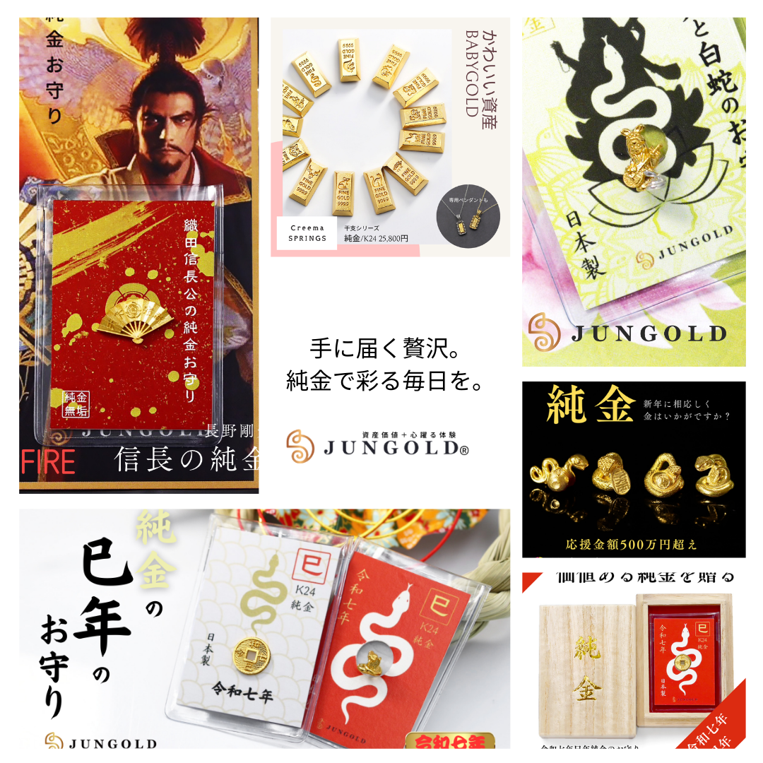2025/01/07 12:12お世話になっております。JUNGOLDでは、ただいま純金のプロジェクトを沢山スタートしております。・【信長の純金お守り】登場。信長が夢見た「黄金と天下布武の精神」を純金で持つ。https://camp-fire.jp/projects/817446/view・JUNGOLDショップオープン【2025年【巳年】の純金のお守り】➡20%OFFやってますhttps://jungold.base.shop/・2025年は金運の象徴【巳年】。今年もやります!JUNGOLDの【純金のお守り】https://www.makuake.com/project/snake2025/・純金の【白蛇と弁財天】のお守り。2025年巳年を盛り上げる、可愛い純金守り⭐︎https://www.creema-springs.jp/projects/rain-snakeomamori・純金&純プラチナで作るジュエリーの王道モチーフ。価値ある幸運の四つ葉のクローバー https://www.makuake.com/project/clover/・2024年はK24「純金」の年となりました。かわいい資産「BABYGOLD」干支シリーズ再販します。 https://www.creema-springs.jp/projects/babygold-snake・令和七年『巳年』純金の縁起物【白蛇小判】 純金ブランドJUNGOLD☆初登場https://kibidango.com/2704今年も純金のものづくりを頑張っていきますのでよろしくお願いいたします。プロジェクト一覧紹介はこちらhttps://jungold.jp/worksまた、新しい年の始まりにJUNGOLDオンラインショップでは新年のご挨拶として20%OFF特別クーポンをご用意しております。https://jungold.base.shop/【クーポン内容】クーポンコード:CFQHPY8D割引内容:2万円以上のご注文商品にて20%オフ 利用期間:2025年1月31日までこの機会に、ぜひ大切な方への贈り物や自分へのご褒美に、皆さまのご来店を心よりお待ちしております。本年もどうぞよろしくお願い申し上げます。 もっと見る発送完了のお知らせ