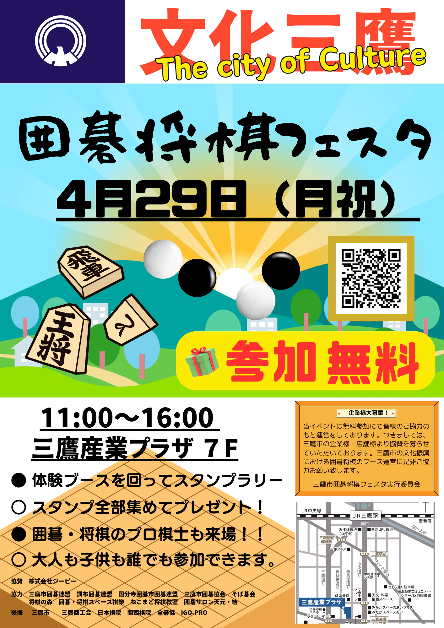 4月29日(月・祝)に「三鷹囲碁将棋フェスタ」を開催いたします。