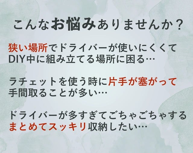 今回提案する商品は、これさえあればドライバーやラチェットはもう何もいらないんじゃないかと思えるような多機能ツールセット。ぜひこれを広めたい、今までとは違った視点で提案できれば良いなと思いプロジェクトの立案に至りました。