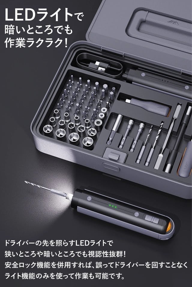 JIMIHOME X1-IはDIYヘビーユーザーにもぴったりな多機能電動&手動ドライバー・ドリル・ラチェットの3in1セットです。