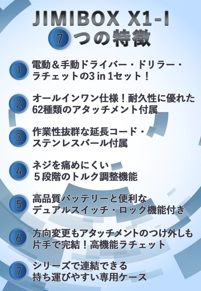 JIMIHOME X1-IはDIYヘビーユーザーにもぴったりな多機能電動&手動ドライバー・ドリル・ラチェットの3in1セットです。