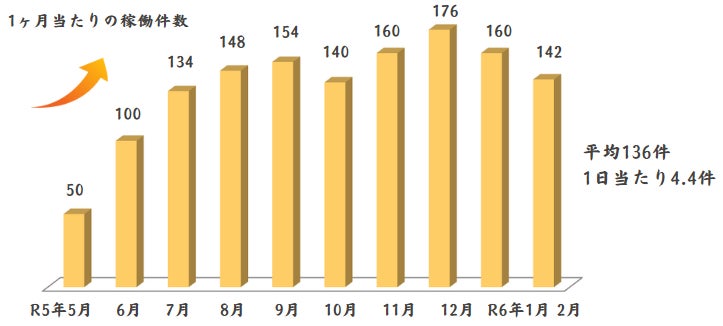 2台(エブリバン、ハイエース)の車で365日24時間稼働しており、平均して136件、1日当たり4.4件の