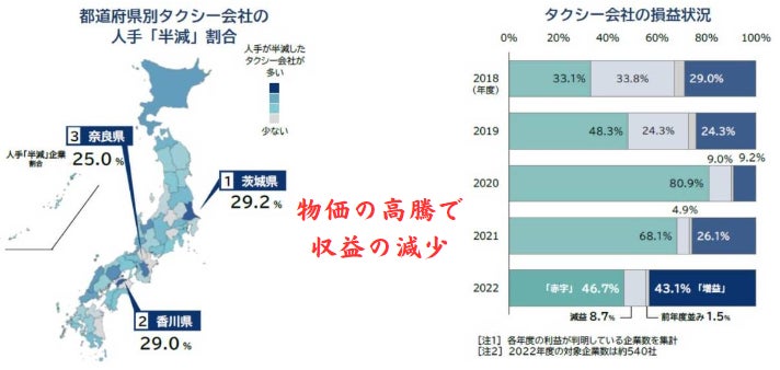 やはり人手不足!そして物価(ガソリン代)の高騰に収益の減少!すなわち赤字ですね。