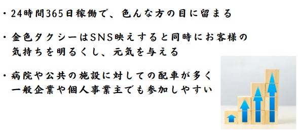 令和6年10月1日:金タクシーを導入し、3台で広告事業を行いながら、運行を開始。