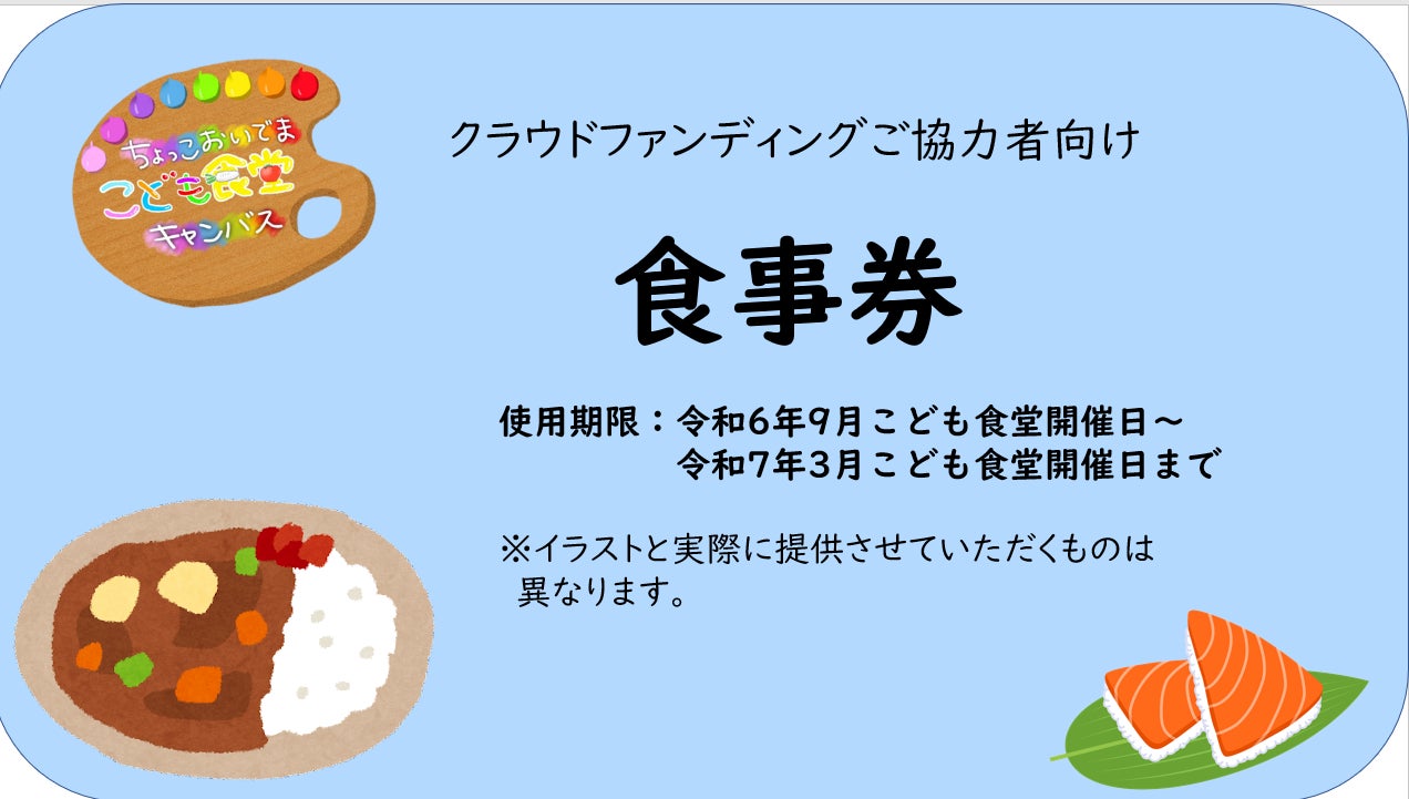 現在、子ども達の食事提供代の無料を実施していますが、大人の方には200円いただいています。そのため、大人の方も子どもを連れて気軽に来ていただけるように食事券の提供を行います。