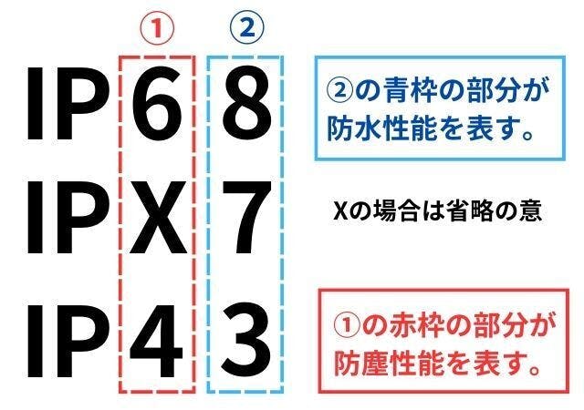 防塵は「6等級」、防水は「8等級」が、一番等級が高い、性能がいいということになります。