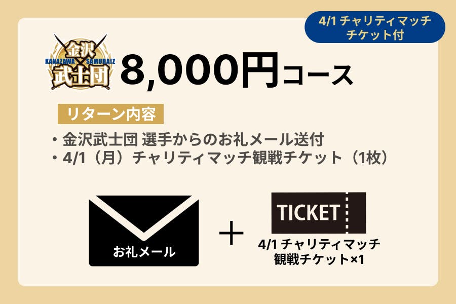 金沢武士団に全面協力いただき、選手からのメッセージやオリジナルグッズをリターン品として設定させていただきました。