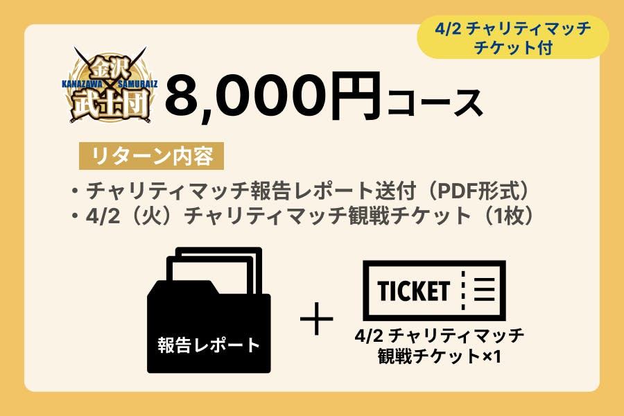 また、当日観戦チケット付きリターンも数を増やして追加しています!(チャリティマッチ報告レポート付、限定数:200個)