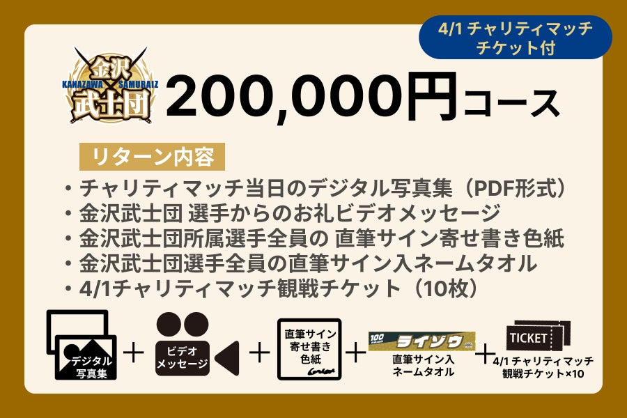 金沢武士団に全面協力いただき、選手からのメッセージやオリジナルグッズをリターン品として設定させていただきました。