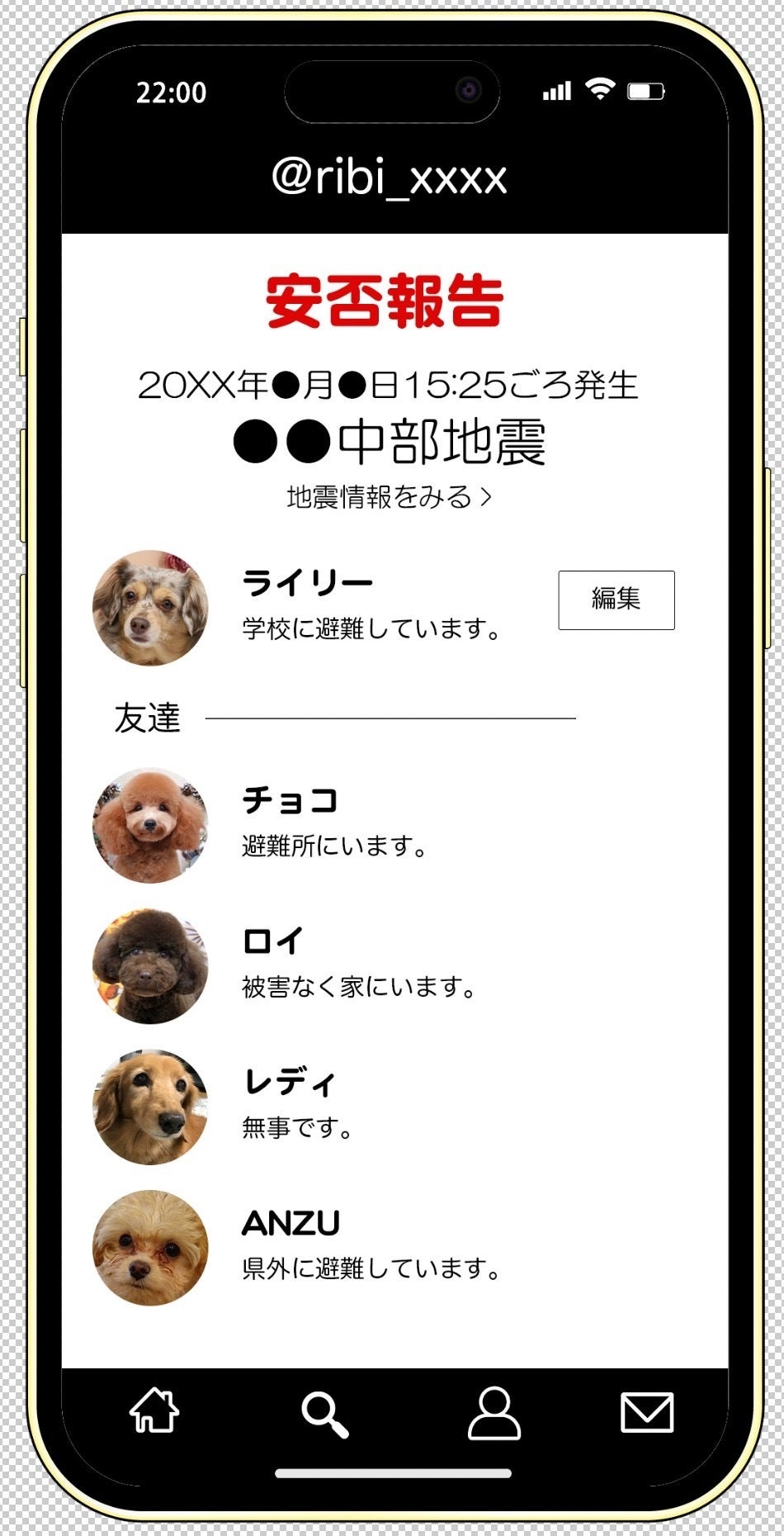 「名前・住所・年齢・犬種・メッセージの有無」などが記載できます。※住所は非公開もできます。