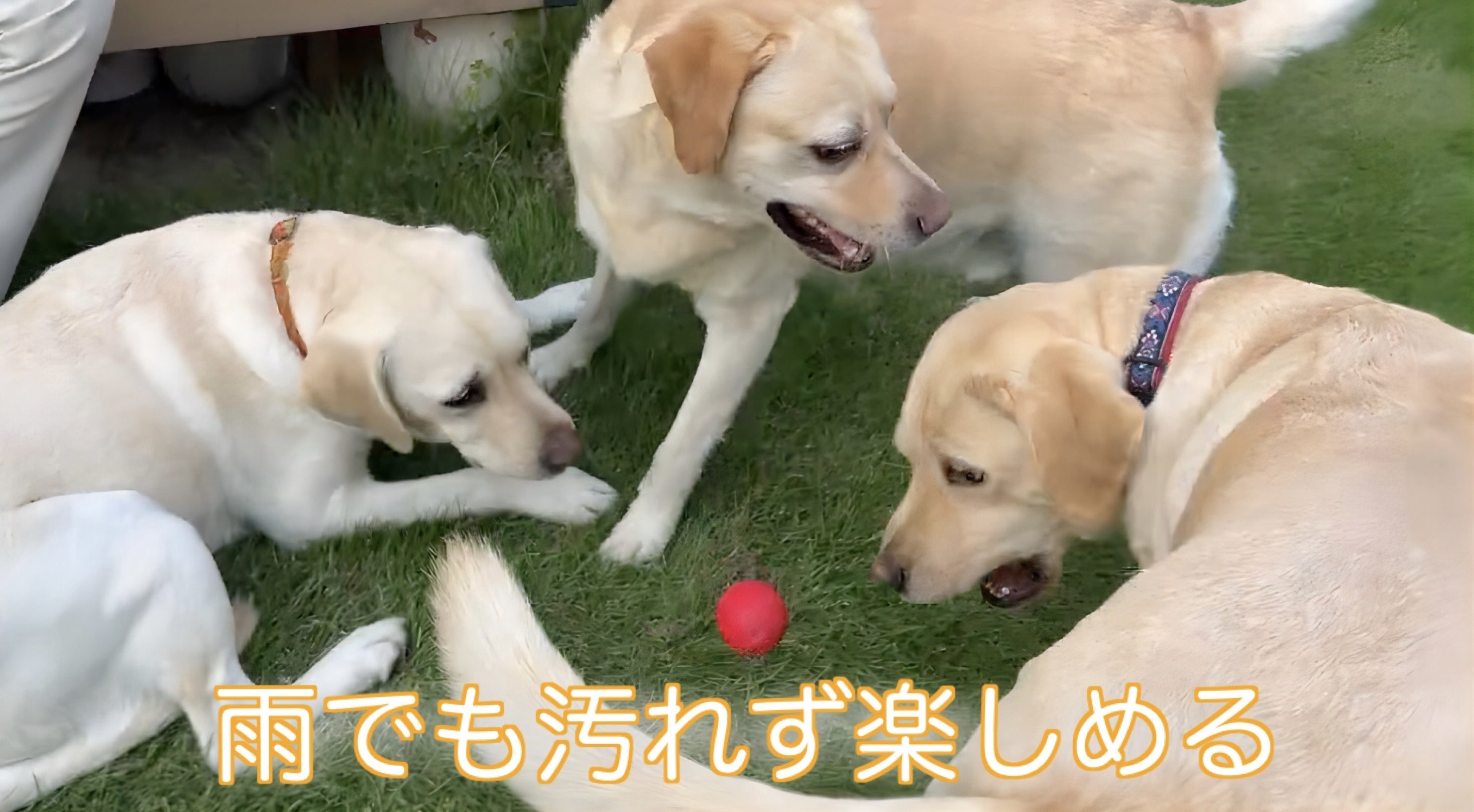 庭に屋根がないため雨や強風の日は外遊び出来ず室内フリーにしてます。しかし中型犬以上は狭くてなかなか体力を消耗する事が出来ません。そこで屋外テントを建て、どんな天候でも沢山遊んで疲れて夜グッスリ・・・となる事により、寝るときにご家族と離れた淋しさを紛らす事が出来ると考えました。