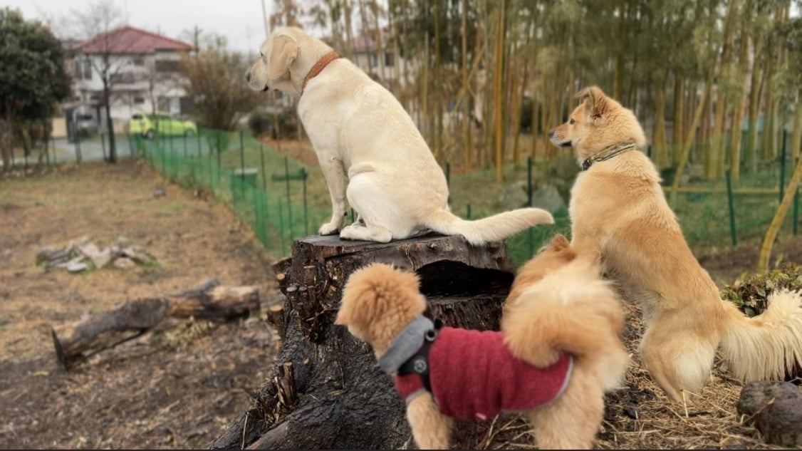 1日計4時間ほどをフリー時間とし、3エリアに区切った庭、全エリア合計約3,000㎡をノーリードで走り回れるドッグホテルとしてワンちゃん達に楽しんで貰えていると思います。