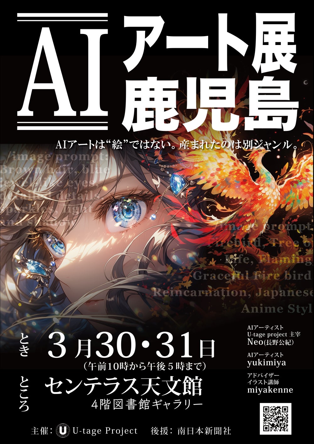 当プロジェクトは、3月30日・31日に、センテラス鹿児島にて開催するAIアート展 鹿児島のサポートのために立ち上げました。