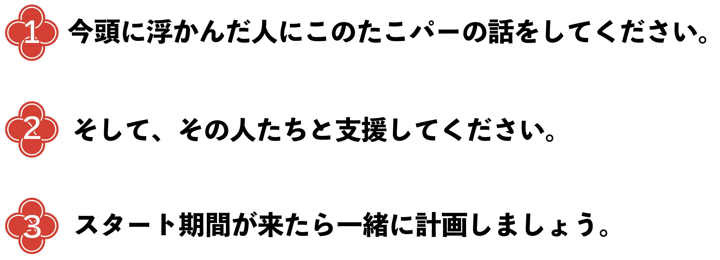 このたこ焼きパーティーを通して、たこ焼きが上手にできる人もいたり、不器用そうに見える人が上手だったり(その逆も然り)その人がその人らしく楽しめ、大切な人たちと最高のコミュニケーションができる、安心できる居場所を提供します。