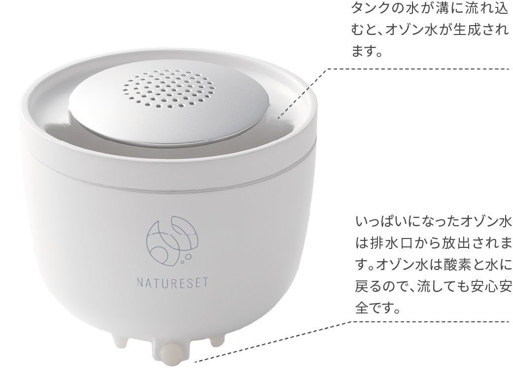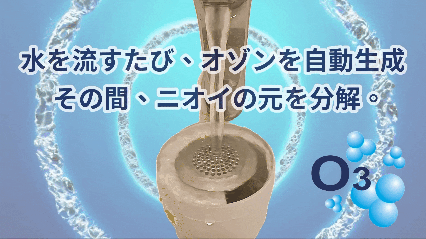 水が流れるたびに3分間オゾン水を自動生成。