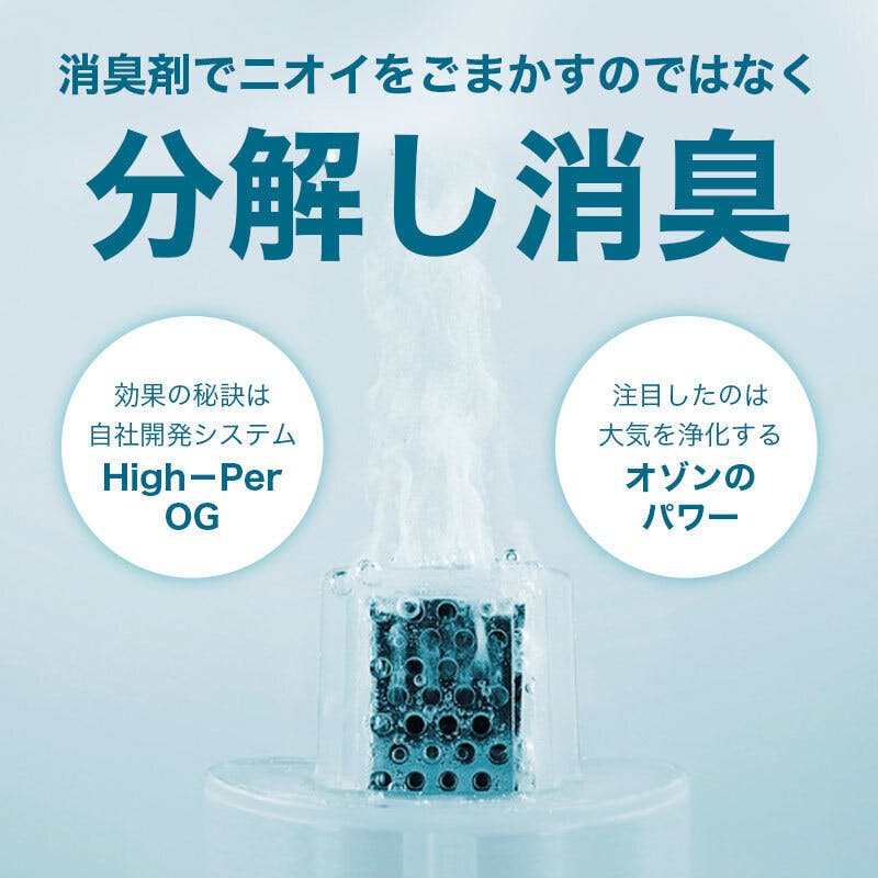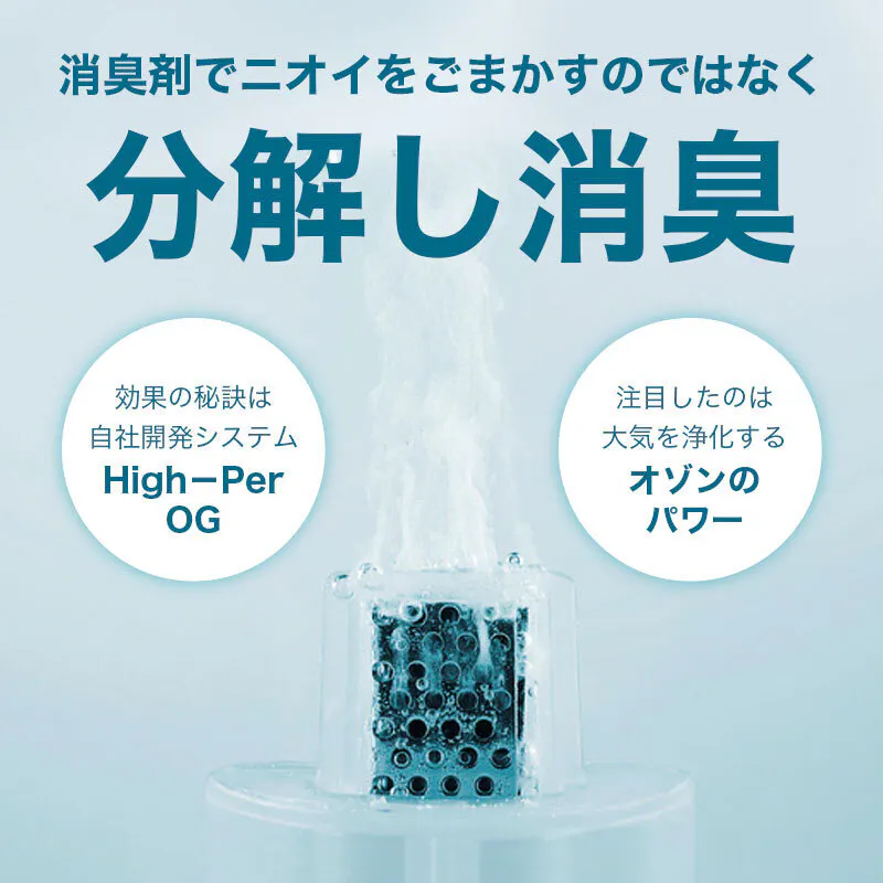 気になるニオイをカムフラージュするのではなく、オゾンの力で悪臭の原因を除去。