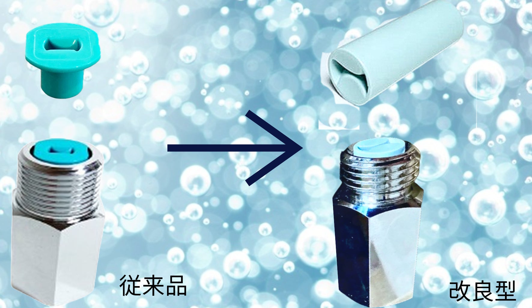 &Nanowash(スーパーナノバブル発生装置水栓)に組み込まれる特許ナノバブル発生コアを従来品より大幅改良リニューアルしたことにより、ナノバブルの泡の細かさ(粒径)と、ナノバブルの発生量を増やすことに成功。